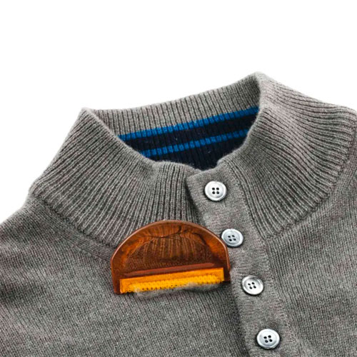 In pratica misura tascabile, strofinandola sui maglioni, ne asporta le palline di lanugine.